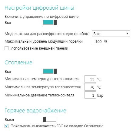 Настройки цифровой шины