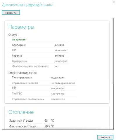 Вот так статус котла (цифровой шины) без ошибки: