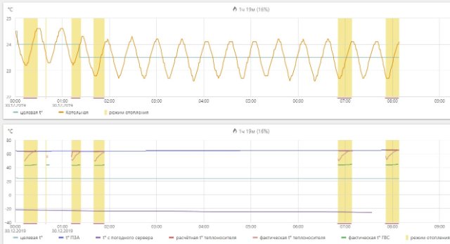 График работы котла за ночь