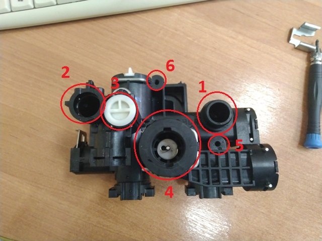 4. Картридж трёхходового клапана. На данный момент с него снят сервомотор.
