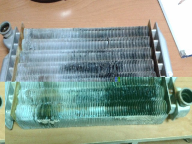 До установки этого котла стоял Protherm, умер теплообменник за год. Думаю этот случай такой же. Radar трубки теплообменника запаралелены между собой или последовательны друг за другом. Я к тому что если допустить что одна из трубок "наглухо" забита будет ли он так же легко продуваться как и не забитый ТО-ик?
