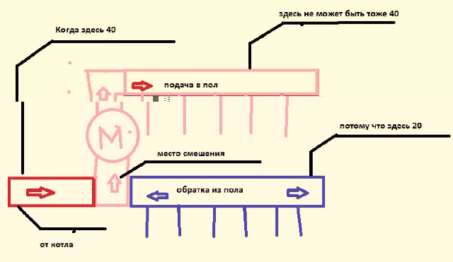 Добрый вечер. В чем проблема. на котле выставил 40С на смесительном узле температура выше 30С не поднимается. термоголовка открыта полностью.