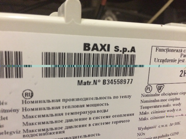 шильдик внутри на левой боковой панели, фото неудобно сделать, модель BAXI ECO3 240i, сod. CSB442243682. matr.№B60460086