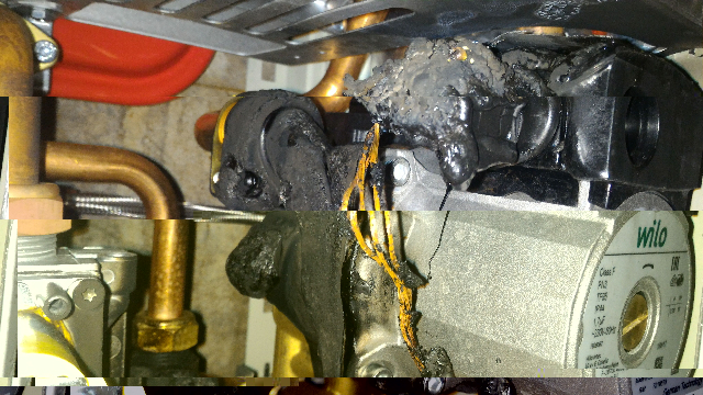 По фото сумма ущерба: Насос - 10 000 руб, датчик потока - 2 000, кабель подключения к газ.клапану - копейки, еще вижу предохранительный клапан "замяло".