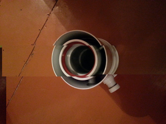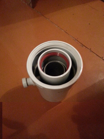 2 элемент - конденсатосборник. Снизу у него внеш - папа, внутр - мама. Вот тут у нас и затык. Вот сюда нам проставка и нужна. В отвод она сядет как обычно в раструб, а в конденсатосборник внутри в раструб, а снаружи встык и соединится хомутом из комплекта конденсатосборника.