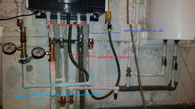 Нужно добавить газовый котел в схему отопления и ГВС и сделать уже все по человечески на постоянной основе прибрать сопли доустановить приборы или краны и т. д.