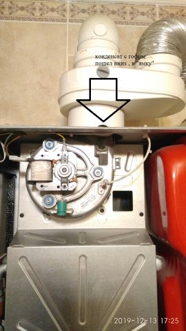 Котел закрыт, что внутри не видно, думаешь - работает и хорошо. Нет, оказывается смотреть нужно. В моем случае следы конденсата были и на металлической штуке закрывающей плату. То есть могла и может сгореть плата, если не доглядеть. А это уже претензия к конструкции.
