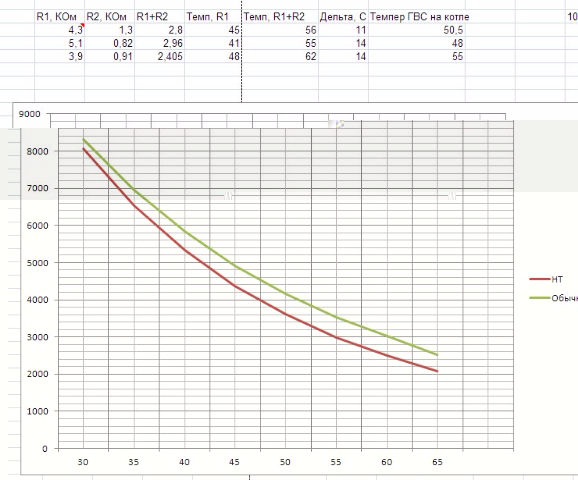 Номиналы резисторов подберу исходя из таблички, в соответствии с ними и настрою температуру ГВС на котле.
