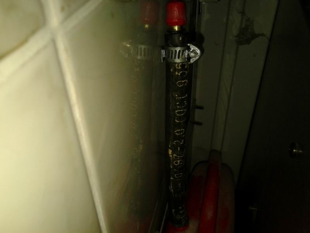 При попытке вывернуть золотник из соска РБ произошла миникатастрофа - золотник обломился в соске, арматура упала внутрь, зацепиться стало не за что, оставшаяся часть никак не поддавалась. Пришлось на выступающую часть соска надеть отрезок кислородного шланга, а в другой конец вставить очищенный от резины сосок с золотником от авто. Затянул хомутом. Накачал по инструкции. Пока держит. Котел работает. Конечно, если снять бак (после снятия котла), то можно изловчиться и вывернуть остатки золотника, но это, возможно, летом. Отдельная благодарность моему другу детства за идею.