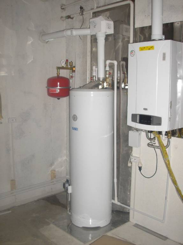 Для этого нужен двухконтурный котел отопления. Цена косвенника и газбойлера одинакова. Выбрали автономный вариант.