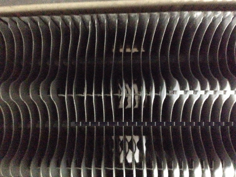 Теплообменник чист, под ним лист белой бумаги для фото.