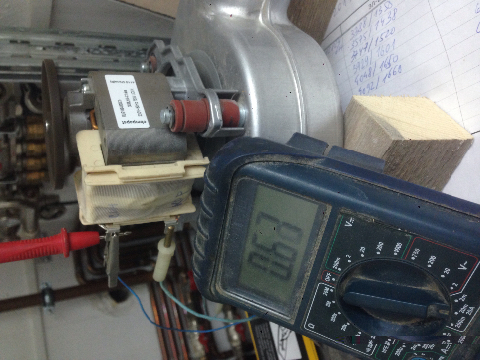 А может и нет... Взял исправную турбонадстаку protherm, там вентилятор стоит 39Вт, а ток показывает 0,32А... Опять завышение почти в два раза. Скорее всего показометр показывает не совсем тот ток, что можно смело ставить в закон Ома... Думаю рано вентилятор списывать