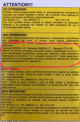 А зачем F10=02 и перемычка, если панель стоит на котле и не подключен дополнительный термостат? В инструкции вроде написано "установите параметры «MODUL» и «AMBON» равными 0, как описано в параграфе 19.1;BAXI-Ural писал(а): 23 дек 2017, 10:23 Параметры MODUL и AMBON выставьте в "0", F10=02, установить на колодке М1 перемычку термостата.