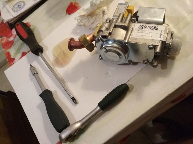 После сборки клапана котел запустился, но счастье было не долгим... при попытке отстроить давления выяснилось, что модулятор не слушается регулировочных винтов... и не реагирует на снятие клеммы... продолжая жарить на примерно 15мбарах вместо 13... остановил... думаю...