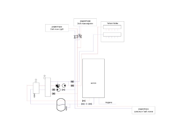 2 насосный узел стоит на подаче теплых полов вместе с трехгодовым краном - далее трубы уходят в коллектор теплых полов.