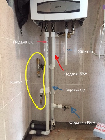 ]Starik], спасибо за совет! У меня обратка контура БКН врезана перед котлом в обратку контура отопления. Сделал как было указано в инструкции к котлу. И получается, что обратка контура БКН связана с обратной контура отопления. Кран конечно на врезке я поставил. Позже выложу фото для ясности.