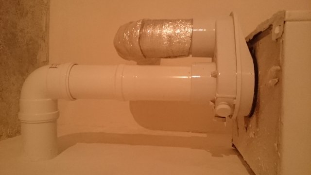 1)пересверлить выход вплотную к стене (но что делать со старой дыркой, делать еще одну не очень хочется)