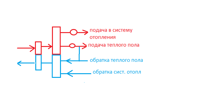 Трёхходовой надо оставить, так как он делает подмечал из обратки в систему тёплых полов. Иначе в полы пойдёт температура котла, а это допустить нельзя.Starik писал(а):Вместо трехходового, а круглый - это насос. )))