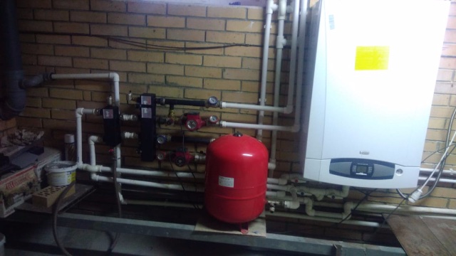 Вы показываете на моей старой фотографии, но сейчас уже переделано. На группах быстрого монтажа насосы стоят как на схеме (на подаче). Посмотрите лучше схему. У меня группа быстрого монтажа, и соответсвенно обратка и подача рядом.