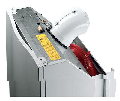 Бак и снимается через верх. Только если дымоход назад идет - придется его демонтировать сначала.
