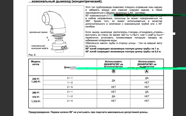 У меня следующая ситуация - планируется небольшая реконструкция, и котёл Luna-3 1.310Fi будет перенесён чуть в сторону, коаксиальный дымоход 100/60 увеличится в длине - сейчас 0,75 м, будет 1,9 м. Смотрю в инструкцию и не понимаю логики. С дымоходом всё понятно, а вот с воздуховодом - очень не понятно. Если верить инструкции, то при длине до 1м диафрагму ставить не надо, между 1м и 2м - поставить, а при длине более 2 м - опять не надо. Но если следовать вышеизложенной логике, диафрагму до какой-то длины надо поставить, а более этой длины - снять, и в части дымохода инструкция этой логике соответствует, а в части воздуховода - нет.