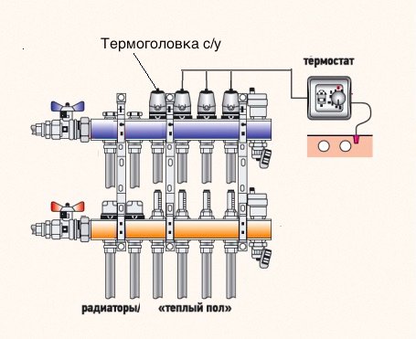 1. Возможно ли такое подключение теплых полов и радиаторов на одном коллекторе, как на рисунке в начале темы?