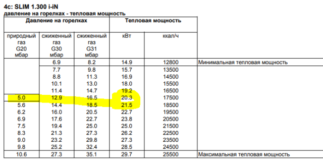 смотрим таблицу из мануала и видим, что мощность минимальная 20квт! ведь меньше 5мбар накрутить нельзяBAXI - Volga писал(а): 23 сен 2019, 13:22 у котла минимальная мощность 14,9 кВт, а в данный момент Вам скорее требуется не более 7-8 кВт, так что тактование будет иметь место