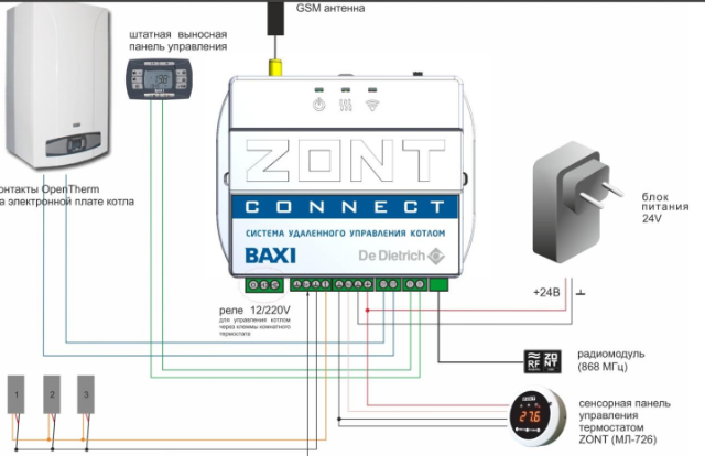 Я тоже установил zont connect к Baxi duo-tec compact 24 по Opentherm перемычку снял, вроде работает, но есть вопросы: