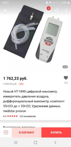 Ну, тут Вам не потенциометр нужен, а манометр перепада давленияTesto 510 или его аналог с алиэкспресса за 2000 рублей (см.на фотке).ALLL писал(а): 19 ноя 2019, 13:21 Отсюда вопрос насколько потенциометром можно изменять настройки давления (во всех инструкциях очень расплывчато)? И где купить и какие штуцера и манометр нужны для настройки (входное все же надо замерить)?