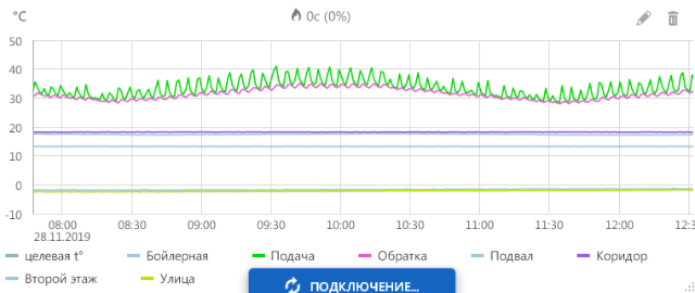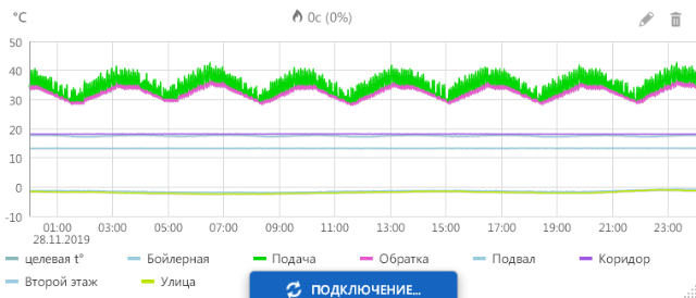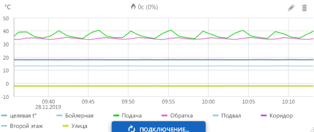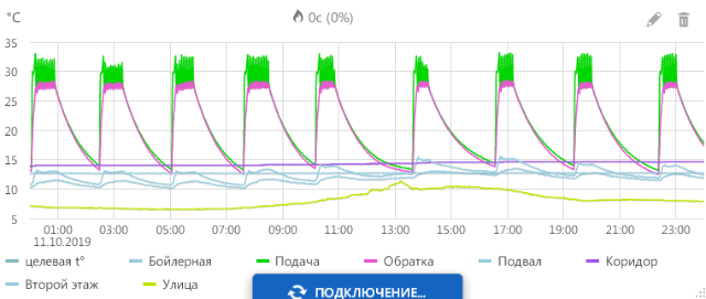 Также не очень понятна модуляция внутри основной кривой температуры подачи/обратки. Отчетливо виден трехминутный цикл и мини скачки температуры. Чем это вызвано ? Хорошо это или плохо ?