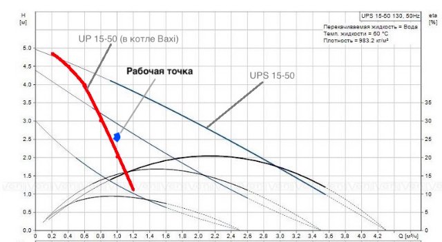 Так, например, исходя из графика в руководстве к котлу Baxi, насос при расходе 1000 л/час имеет напор 2 метра, а антологичный насос при таком же расходе, имеет напор 4 метра (верхняя кривая, третья скорость)?