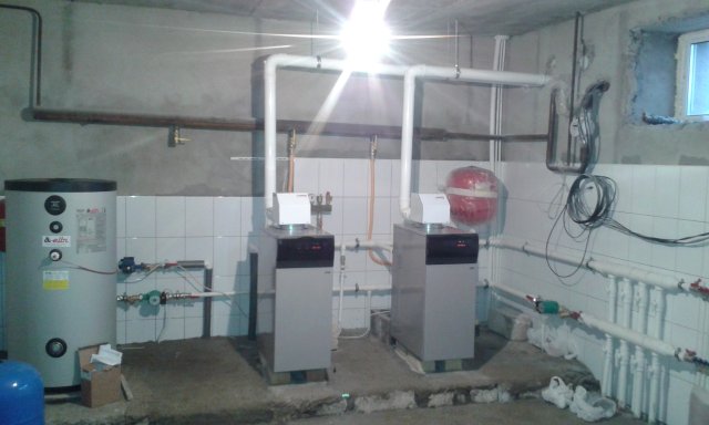 Бойлер тоже при желании можно на 2 котла завести и простым переключателем переводить работу ГВС между котлами.