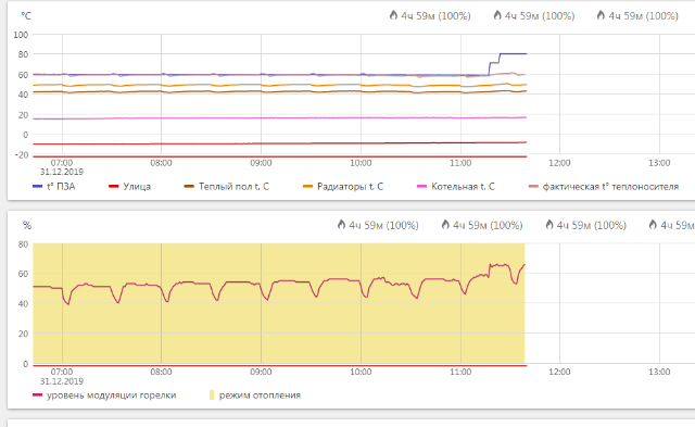 Сегодня температура на уличе 3-5С со знаком минус. И целевая ПЗА опустилась ниже 60С. Все стало управляться штатно.
