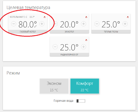 Спасибо за ответ. Получается выбор кривой kt - это установка с комнатного термостата или установленного на котле условной кривой в диапазоне 00-90 и примерно совпадает с желаемой температурой в помещении на основании показаний датчика уличной температуры? Я выставлял кривую 25 на Zont ( это максимальная). Затем в ручном режиме доводил до 80. Однако целевая температура все равно упирается в 60С. Все это по шине. В настройках котла ничего не менялось, кроме необходимых параметров для подключения по шине. Если я что-то делаю неверно, подскажите пожалуйста, в каком направлении искать ответ? Буду очень благодарен за помощь!