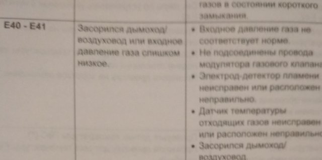 Е41 "Дымоход или входное давление газа слишком низкое" "Входное давление газа не соответствует норме"