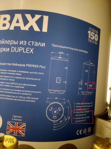 Вход и выход греющей отопительной воды 3/4"