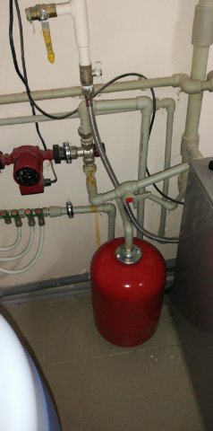 Расширительный (красный) стоит на обратке контура отопления.