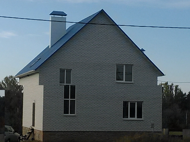 Трубу монтировал я сам лично, месяц отпуска на это потратил ))) Старался внутри каналов тщательно затирать раствор перчаткой, чтоб максимально гладко все было. В общем претензии предъявлять некому. По поводу "нарастите уже" - это сказать просто, а практически это надо минимум автовышку на целый день. Это только летом будет теперь реально, да и все равно туда лезть - зонтик над трубой ужасно гремит на ветру, зря я доверился кровельщикам, которые утверждали что все будет в порядке.. там надо кардинально переделывать конструкцию и крепление. Ну и видимо действительно наращивать трубу. Конденсат - где его посмотреть? Снизу трубы, в окошке - сухо. На улице труба утеплена ватой 5 см, и обшита профилем. По холодному чердаку пока не утеплена, но планирую утеплить ЭППС 3 см толщиной. На фото внизу внешний вид трубы, от ее края до конька - ровно 1,5 метра.