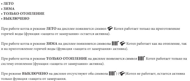 Только вот совершенно не очевидно как соотносятся настройки и пункта 3.2 (лето/зима/только отопление/выключено) с описанием параметра F03 в пункте 20. Какие параметры при каких режимах не могут быть вместе выставлены