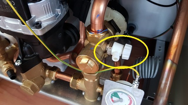 Кран слива воды из бойлера интересно сделан, но ведь в группе нет встроенного обратного клапана и можно сливать воду просто из подводящей магистрали еще до котла? 3. Для чего нужен этот штуцер с белым краником на трехходовом клапане? Нигде не нашел его назначение или просто просмотрел. Спасибо за ответы!