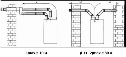 2. Для раздельных притока/выхлопа, в инструкции на рисунке два варианта вывода труб в стену, но не описывается, в каких случаях какой вариант использовать. Чем обуславливается выбор? 3. Насчет минимальной длины трубы в инструкции тоже ничего не сказано. Могу ли я просто сразу вывести трубу в стену от котла? Длина трубы в таком случае будет менее метра.