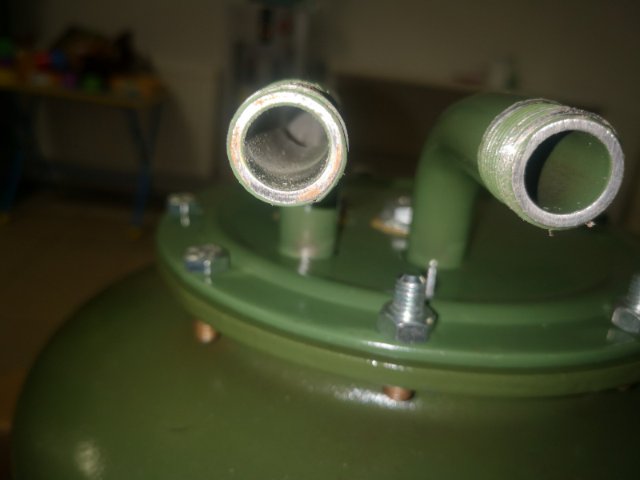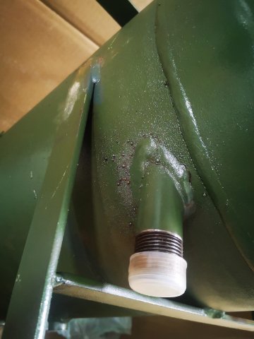 1. Отличие цвета/фактуры краски на фланце и баке. Фланец аккуратный глянцевый, бак шершавый, местами ржавый и местами подкрашен.