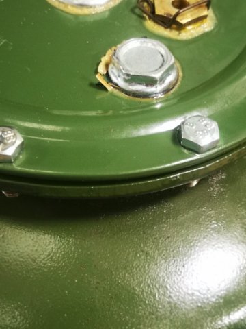 1. Отличие цвета/фактуры краски на фланце и баке. Фланец аккуратный глянцевый, бак шершавый, местами ржавый и местами подкрашен.
