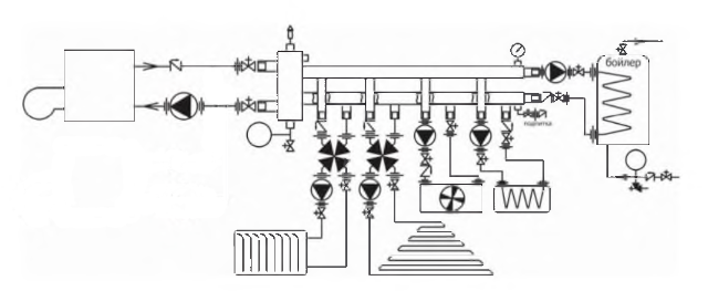 Из неё запитан тёплый пол, батареи первый этаж, батареи второй этаж, летний домик и ГВС