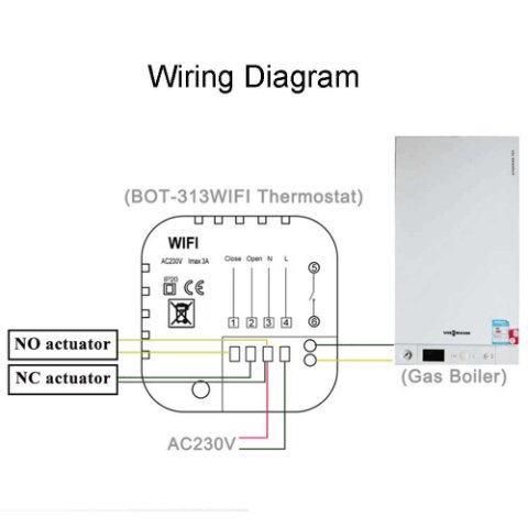 Схема подключения идет с термостатом.