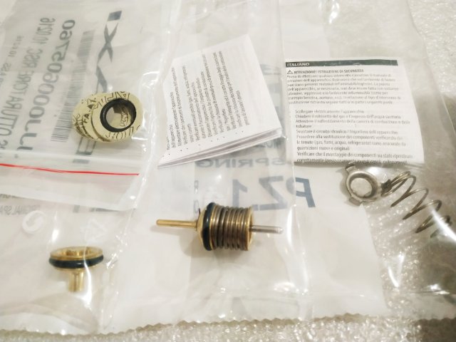 2. Так же, при работе на ГВС, травит горячую воду в СО. Снял мотор трёхходового клапана, включил котел на ГВС и надавил подходящим инструментом на шток затвора ГВС, сильно надавил, все равно травит... Причем шток ходит не равномерно, как будто за что то цепляется. Так же не возвращается до конца при прекращении надавливания. Собственно решил провести ревизию клапана, отсюда вопрос, менять нужно только шток затвора или тарелочку с конической пружиной вместе? Вопрос скорее к практикам. Если коническая пружина исправна, шток затвора ГВС должна выходить полностью? В нашей провинции запчастей в наличии нет, только под заказ, поэтому и спрашиваю.