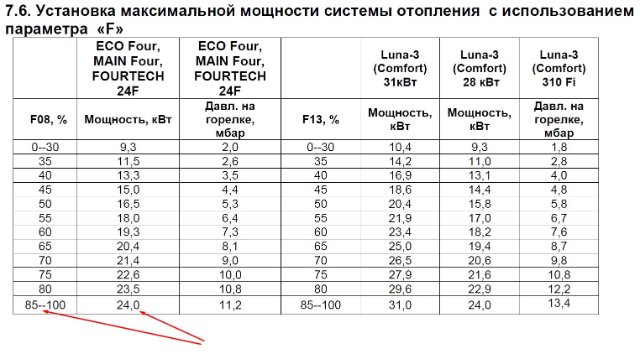 Заданная температура 75 град. А какое значение F08 должно быть? П0 таблице это те же 24 кВт. Был перегрев котла в прошлом году, мастер выставил F08 60, но потом обнаружил повышенное максимальное давление на газовом клапане. Выставил его по манометру, а F08 выставил 85.Starik писал(а): 02 дек 2022, 20:24Не эта информация нужна.