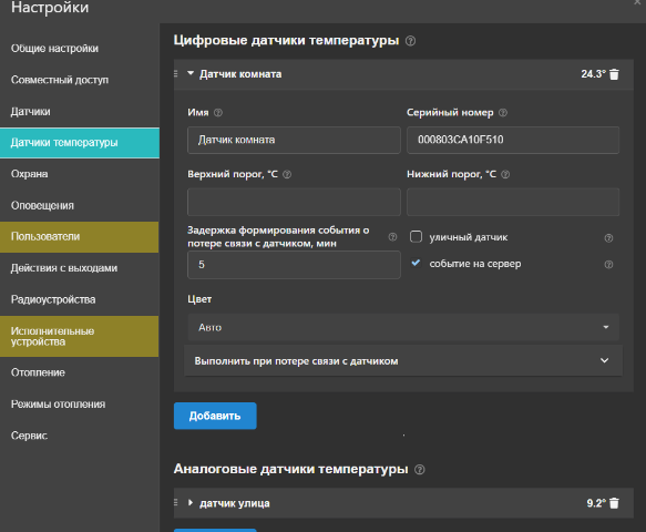 При подключении цифрового датчика(из комплекта)он должен отобразится в Настройки-датчики температуры. Потом обзываете его как хотите,он так и отобразится.Полярность обязательно соблюдайте.