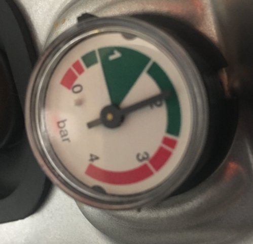 Держу давление 1,8-2,1. Если опустится до 1,4 застучит. Манометр, который на котле, с низу, в зелёном поле, но выше сектора.