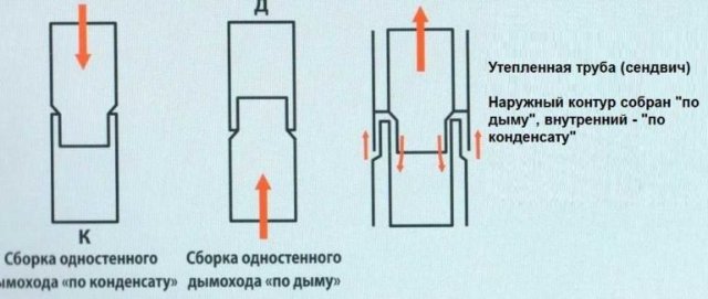выход 120мм. Как делать подключение от котла к выходному патрубку дымохода в стене? По дыму или по конденсату? в инструкции ничего нет, там только для турбо котлов.
